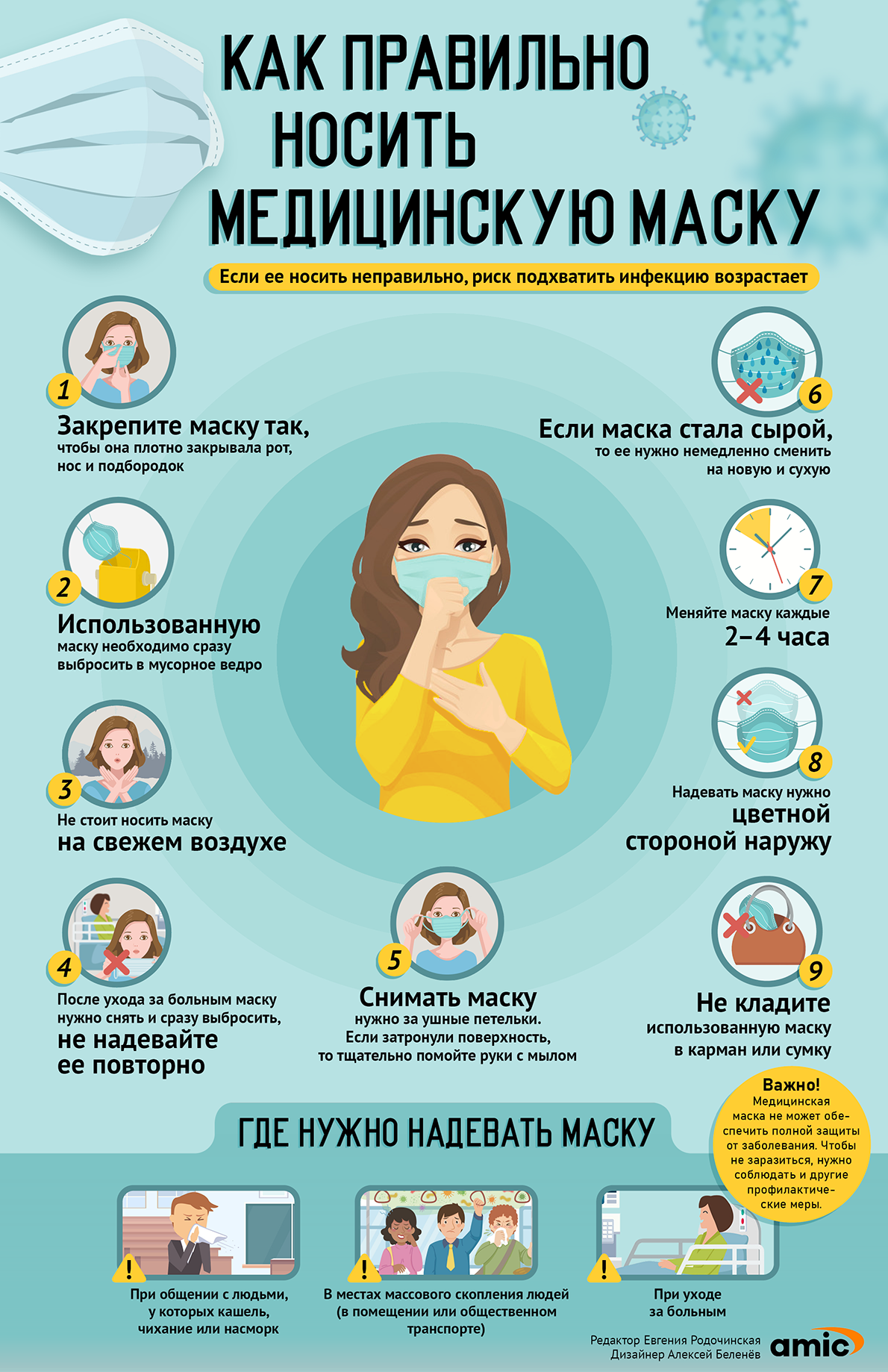 • Используйте маску, когда находитесь в транспорте или в людных местах