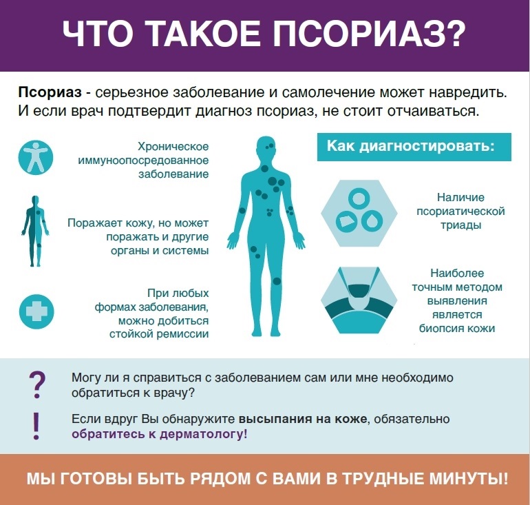 Кроме кожи, при псориазе могут поражаться также суставы, это состояние называют – псориатический артрит. Псориаз может проявляться в любом возрасте, начиная с рождения человека. Псориазом одинаково страдают как женщины, так и мужчины. Заболевание это хроническое, в его патогенезе основную роль играет наследственность, нарушения иммунной системы, а также разные провоцирующие факторы.