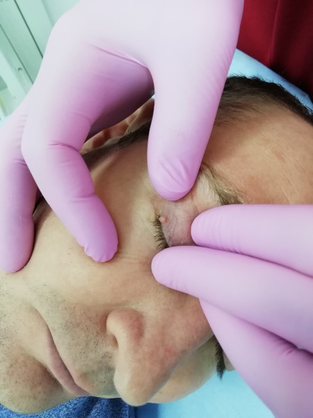 1) Лазерное удаление мягкой фибромы ресничной борозды сложной локализации. За помощью в амбулаторное отделение нашего диспансера на ул. Вермишева, 18, обратился мужчина. Удаление новообразования, которое мешало и доставляло пациенту неудобства, заняло всего несколько минут;