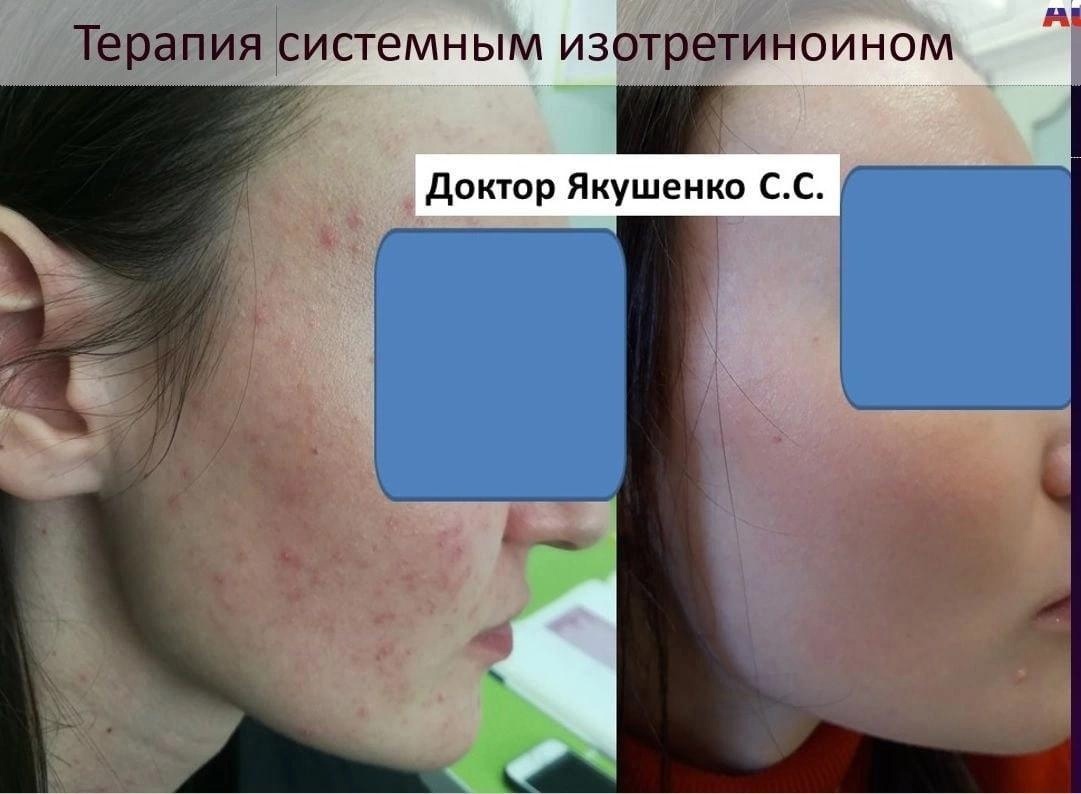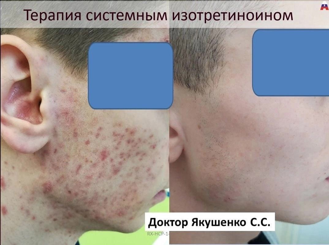 "Как известно, на сегодняшний день самая эффективная терапия акне (угревой болезни) - это системные ретиноиды. Данный вид терапии за более чем 30 практики доказал свою эффективность и безопасность. Это метод позволяет с вероятностью 90% полностью вылечить акне с ремиссией на всю жизнь. Данный метод лечения проводится строго под наблюдением врача - дерматолога."