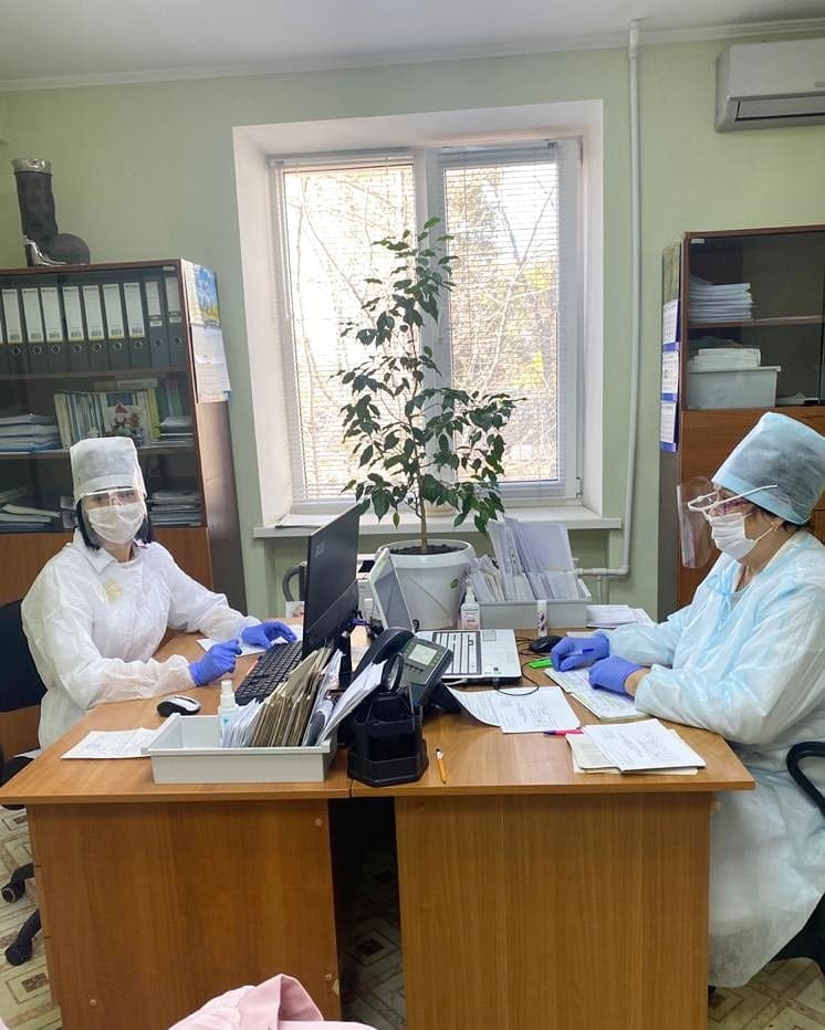 Что касается мер эпидбезопасности, сейчас они жесткие как никогда. Этот вопрос находится на особом контроле у руководства и лично главного врача диспансера Суховой Любови Петровной, которая личным примером показывает, как нужно использовать средства индивидуальной защиты.