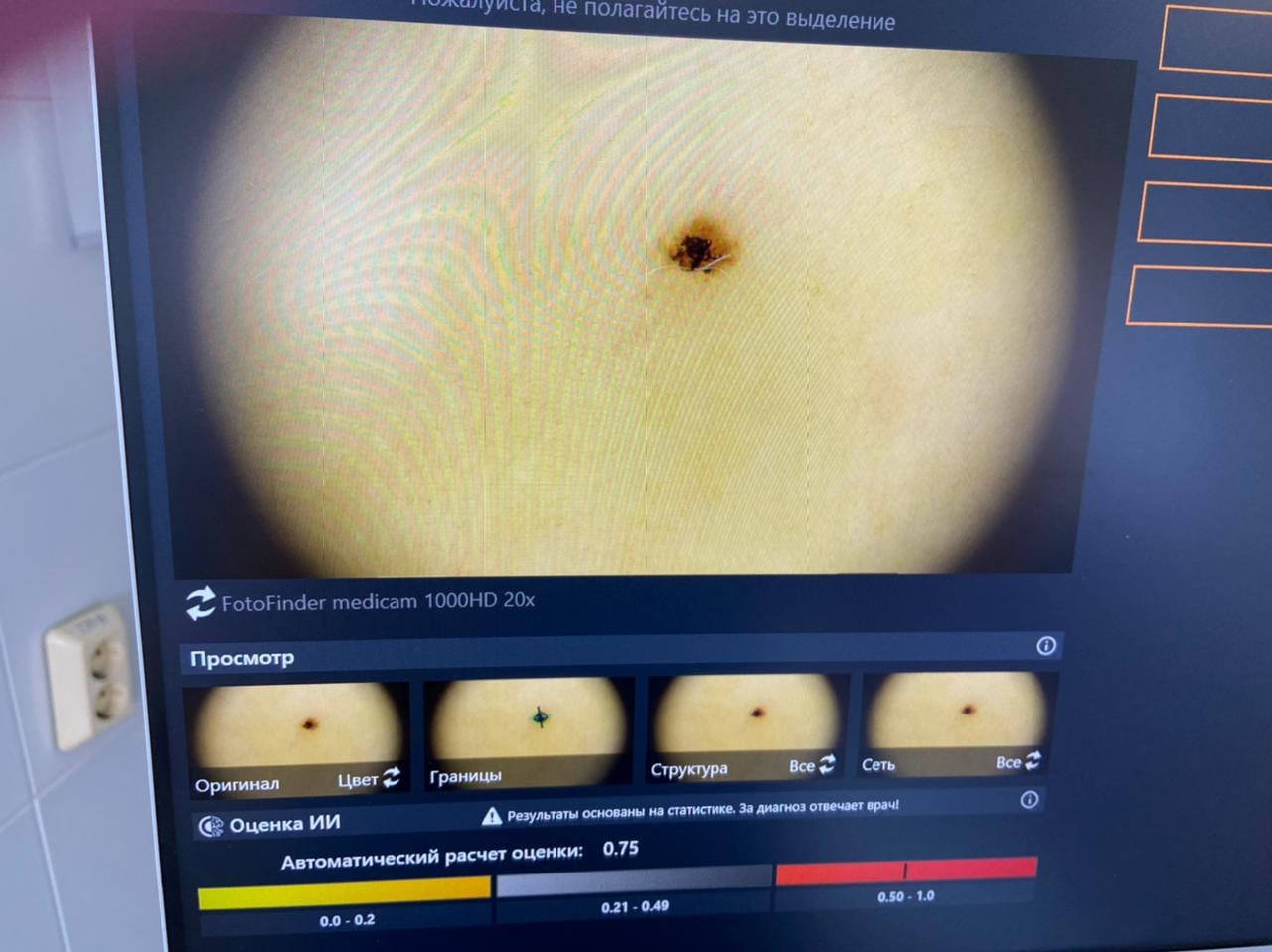 Вот лишь некоторые возможности нового оборудования: FotoFinder ATBM – уникальная технология автоматического тотального картирования тела. FotoFinder dermoscopy – инструменты и программы для диагностики меланомы и немеланоцитарных форм рака кожи экспертного уровня. FotoFinder MoleanalyserPro — первая в мире программа для анализа новообразований, использующая искусственный интеллект.