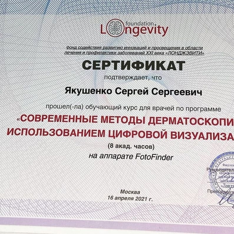 Врач дерматолог-онколог ГУЗ ОКВД Якушенко Сергей Сергеевич уже прошел специальное обучение по работе на Фотофайндере, получил сертификат и поделился своими впечатлениями: