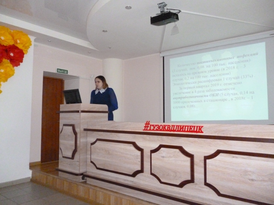 Врач эпидемиолог ГУЗ «ЛОЦБС и ИЗ» Шуваева И.С. ознакомила с ИСМП в медицинских организациях Липецкой области за 2018 год и I квартал 2019 года, профилактикой ИСМП.