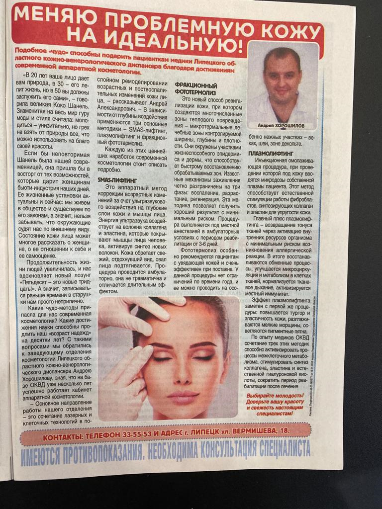 Прочитав интервью, читатели газеты узнают подробнее о таких процедурах как SMAS-лифтинг, фракционный фототермолиз и плазмолифтинг.